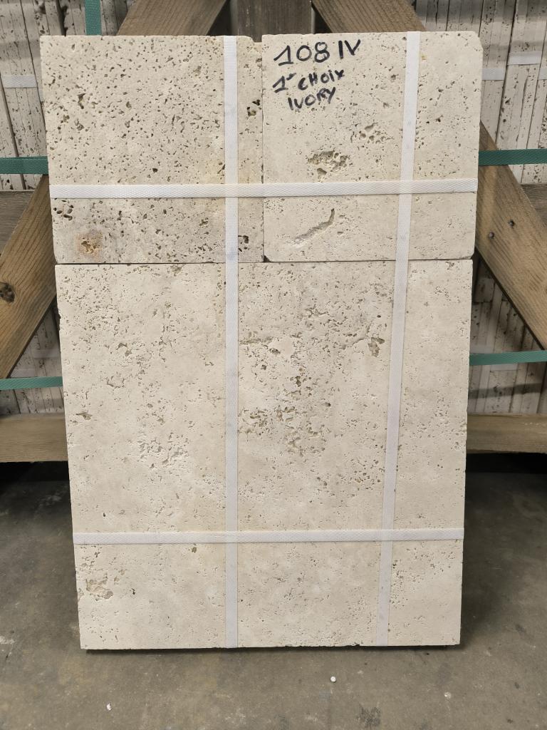 Promotion exceptionnelle : Palette de travertin rare Ivory, 1er choix, format opus , couvrant 38,58 m², au prix de 1 200 € TTC.